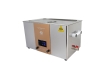 通過換能器,將功率超聲頻源的聲能轉(zhuǎn)換成機(jī)械振動(dòng),通過清洗槽壁將超聲波輻射到槽子中的清洗液。由于受到超聲波的輻射,槽內(nèi)液體中的微氣泡能夠在聲波的作用下快速變大破裂,破裂時(shí)產(chǎn)生的高強(qiáng)度剪切力作用于各類樣品上,從而達(dá)到清洗、提取、乳化、加速溶解、粉碎、分散等作用。